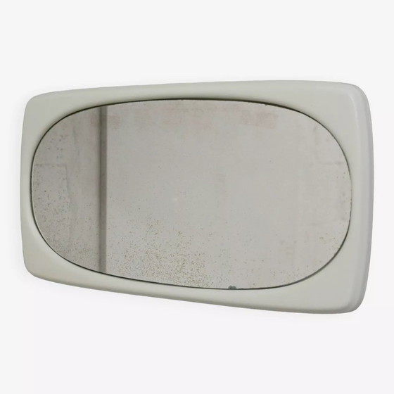 Spiegel "Space Age". Cataneo, Italien, ca. 1970. Kunststoff und Glas. Zahlreiche Taintenstiche auf dem Spiegel. Sehr schönes Design.