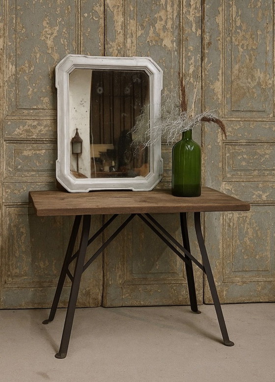 Die massive Holzplatte und die stabilen Metallbeine versprühen einen industriellen Charme, der sich perfekt in moderne und Vintage-Einrichtungen einfügt. Dieser Tisch ist nicht nur eine funktionale Arbeitsfläche, sondern auch ein stilvolles Dekorationselement, das jedem Raum Leben einhaucht.
