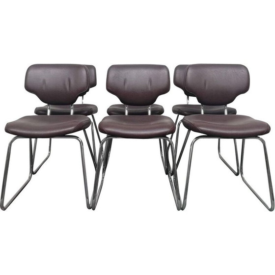 Stapelbarer Stuhl aus verchromtem Metall und Leder