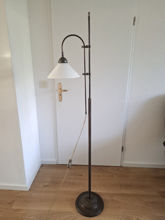 Diese elegante Stehlampe verleiht jedem Raum einen Hauch von klassischem Charme. Mit ihrem edlen Kupferfuß und dem zeitlosen Opalglasschirm spendet sie nicht nur funktionales Licht, sondern wertet Ihre Einrichtung auch ästhetisch auf.