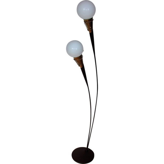 Mid Century Stehleuchte, 1960er Jahre Sie wurde aus Metall, Messing und Glas hergestellt. Die Lampe benötigt 2 E14 Glühbirnen