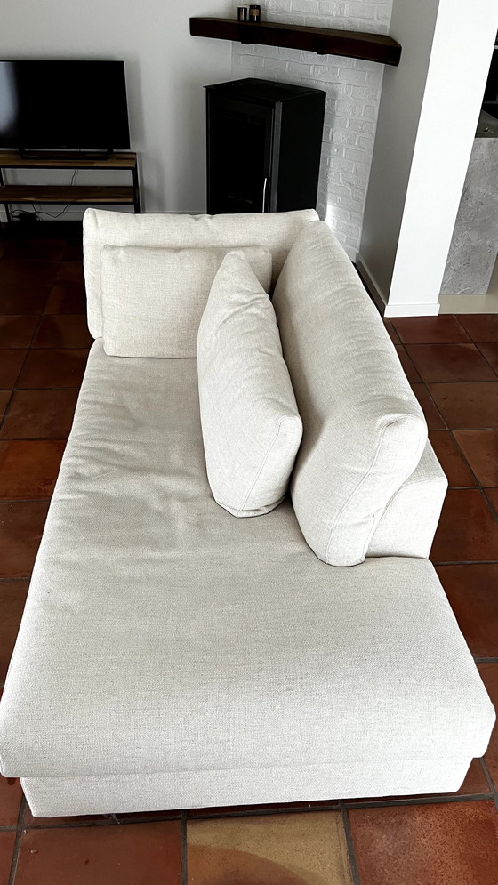 Ich verkaufe diesen 2-sitzigen Sessel/Longchair, den ich im Jahr 2023 bei Purdey D Design in Antwerpen gekauft habe. Der beige Stoffsitz ist in ausgezeichnetem Zustand. Der ursprüngliche Preis war €1495. Die Kissen sind mit Federn gefüllt, was sie sehr bequem macht. Alle Kissen können für einen einfachen Transport abgenommen werden. Der Sitz kann nur in Sint-Niklaas abgeholt werden. Die Abmessungen sind 226 cm (Länge) mal 113 cm (Breite).