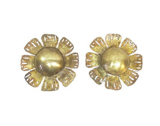 SVEND AAGE HOLM SØRENSEN (1913-2004) 2 dänische brutalistische Wandleuchten, sogenannte Flower aus den 1960er Jahren. Gestell aus Messing. Etikett des Designers auf der Rückseite der Wandleuchten. Abnutzungen und Gebrauchsspuren. Durchmesser: 32,5 cm, Dicke 9cm