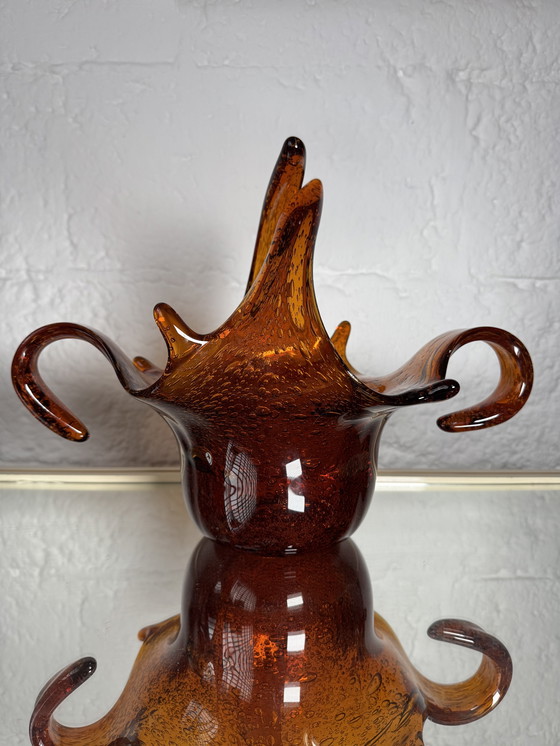 Taschenentleerer aus bernsteinfarbenem Blasenglas aus den 60er Jahren