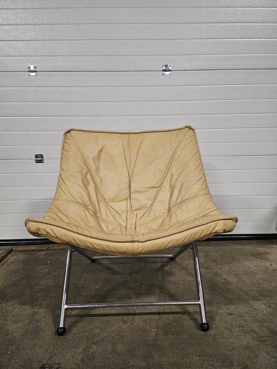 Erleben Sie den Komfort und Stil dieses wunderschönen Sessels, entworfen von Teun van Zanten. Er besticht durch seine dezente Eleganz und fügt sich perfekt in moderne wie klassische Einrichtungen ein. Das Design vereint minimalistische Ästhetik mit einer einladenden Form und macht ihn so zur idealen Ergänzung Ihres Wohnraums. Der weiche, gelbe Bezug sorgt nicht nur für ein luxuriöses Erscheinungsbild, sondern auch für ein angenehmes Sitzgefühl. Das robuste Metallgestell garantiert Langlebigkeit und Stabilität und macht diesen Sessel nicht nur schön anzusehen, sondern auch äußerst praktisch. Verleihen Sie Ihrem Interieur mit diesem einzigartigen Designersessel einen Hauch von Raffinesse.