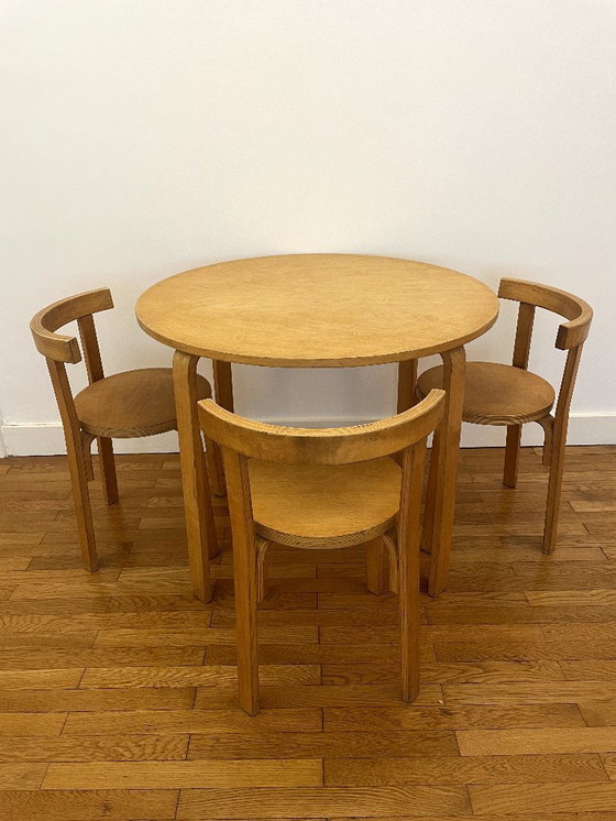 Wunderschönes Set aus Tisch und vier Stühlen im Vintage-Stil von Alvar Aalto, Anfang der 1960er Jahre.