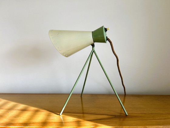 Schreibtischlampe entworfen von Josef Hurka für Napako, hergestellt in der Tschechoslowakei, legendäre Lampe in einzigartiger grüner Farbe, Originalzustand, voll funktionsfähig