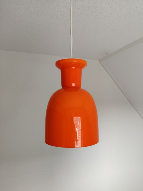 RAAK-Lampe, Typ B1203. Die Lampe ist außen orange und innen weiß.