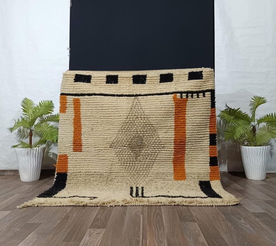 Tauchen Sie ein in das reiche kulturelle Erbe Marokkos mit diesem exquisiten traditionellen marokkanischen Wollteppich. Mit seinen Maßen von 200 x 200 cm ist dieses Stück ein Zeugnis zeitloser Kunstfertigkeit und Handwerkskunst marokkanischer Weber.