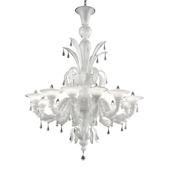 Moderner, strahlend weißer Kronleuchter aus Muranoglas „Cà Rezzonico“.