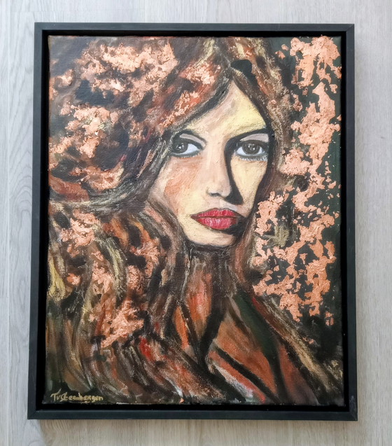 – Die Acrylfarbe und die feinen Goldspäne verleihen dem Porträt eine luxuriöse und lebendige Ausstrahlung.
