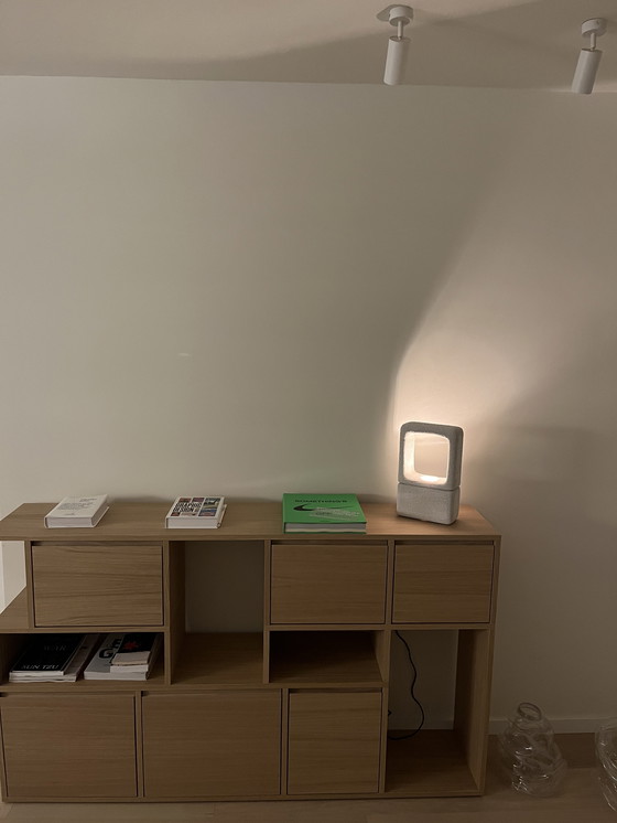 Das Regal ist in exzellentem Zustand und weist lediglich eine kleine Unvollkommenheit auf: An einer kleinen Stelle kleben noch Klebebandreste am Holz (siehe Fotos). Dies ist die einzige Stelle mit Gebrauchsspuren.