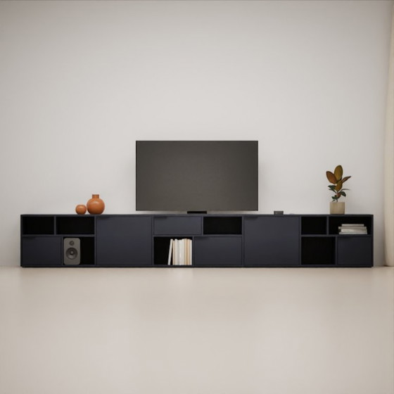 Tylko TV-Ständer in Mitternachtsblau mit Türen und Schubladen