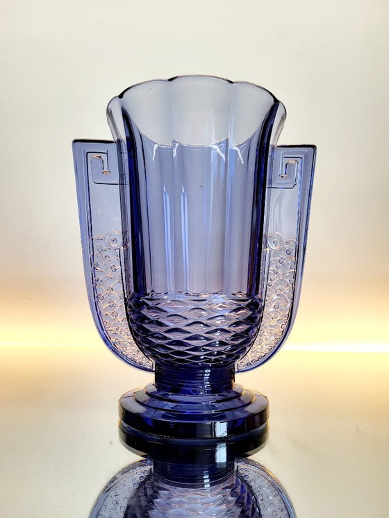 Val Saint Lambert Art deco Vase, Luxval Serie Modell Romeo, fliederfarben, Belgien
