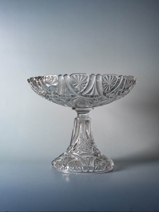 Diese schöne Sockelschale gehört zum Service Lucrèce von Val Saint Lambert und besteht aus Demi-Cristal, einem hochwertigen Glas, das für seine Brillanz und Klarheit bekannt ist. Sie ist mit floralen und geometrischen Mustern verziert, die ihr ein klassisches und elegantes Aussehen verleihen. Der robuste Sockel unterstreicht seinen Charme und eignet sich hervorragend zum Servieren von Früchten, Desserts oder als dekoratives Mittelstück. Dieses Stück zeugt von der zeitlosen Handwerkskunst und dem raffinierten Stil, für den Val Saint Lambert bekannt ist.