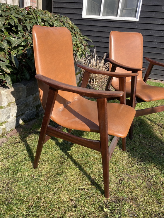 Van Teeffelen-Sessel mit cognacfarbener Kunstlederpolsterung