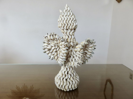 Vase aus Muscheln in freier Form. Südpazifik, Hawaii, Polynesien. 1970. Trockenblumen oder Dekorationsobjekt. Höhe 36cm. Spannweite 22cm. Sehr sauber, Große dekorative Präsenz. Atypisches und originelles Objekt.