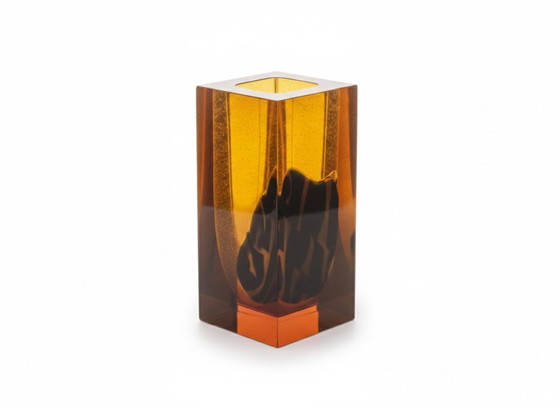 Diese Vase wurde in den 1980er-Jahren von Jiří Šuhájek für Exbor (Eggerman Glasmanufaktur) entworfen. Sie ist ein Beispiel für die raffinierte Studioglaskunst der Tschechoslowakei jener Zeit.