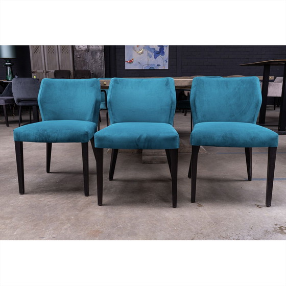 Versmissen Jasy Velour 060 Esszimmerstuhl (3er-Set) Breite: 50,5 cm Tiefe: 60 cm Höhe: 77 cm Sitzhöhe: 46 cm Bezug: Gancedo - Velours - 060 Zustand: Neuwertig, aus Ausstellungsraum. Verleihen Sie Ihrem Esszimmer mit den eleganten Jasy Esszimmerstühlen einen Hauch von Luxus! Die Stühle werden im 3er-Set angeboten und ermöglichen Ihnen so ein perfektes Ensemble an Ihrem Esstisch. Sie sind mit dem wunderschönen und weichen Veloursstoff 060 bezogen und schaffen eine warme und gemütliche Atmosphäre. Die Jasy Esszimmerstühle passen zu jeder Einrichtung und eignen sich nicht nur für das Esszimmer, sondern auch für andere Räume wie Arbeitszimmer oder Wohnzimmer. Die Maße der Stühle betragen 77 cm x 50,5 cm x 60 cm (H x B x T), die Sitzhöhe 46 cm. Velours kann Flecken und Streifen aufweisen. Auch eine leichte Abflachung des Flors ist üblich. Dies ist kein Mangel. Um den plattgedrückten Flor aufzurichten und Fleckenbildung oder Streifenbildung zu reduzieren, empfehlen wir, den Stoff leicht mit Dampf anzufeuchten (ohne ihn zu berühren) und anschließend mit einer weichen Bürste aufzurichten. Dieser Stuhl ist mit originalem GANCEDO-Stoff bezogen, einem renommierten spanischen Designer und Hersteller hochwertiger Stoffe. GANCEDO ist bekannt für seine unverwechselbaren Designs und seine hohe Qualität. Und das Beste? Jetzt mit einem deutlichen Rabatt erhältlich! Bitte beachten Sie, dass die Stühle aufgrund der Verwendung im Ausstellungsraum leichte Gebrauchsspuren an den Beinen aufweisen können. Worauf warten Sie noch? Bereichern Sie Ihr Interieur mit den eleganten Jasy-Esszimmerstühlen und genießen Sie den Komfort, den Luxus und das besondere Ambiente. Bitte beachten Sie, dass die Farbdarstellung auf Computerbildschirmen und durch Bildbearbeitung variieren kann. In der Realität können daher leichte Abweichungen auftreten.