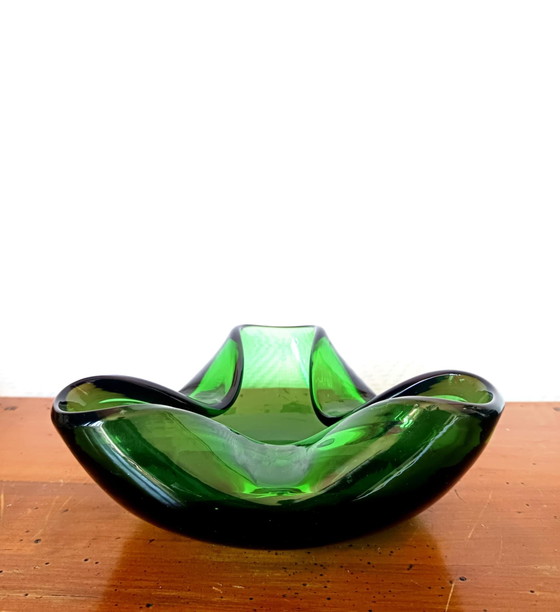 Taschenleerer oder Aschenbecher, Vintage Murano Arbeit um 1970. Glasstück mit gefalteten Rändern in grüner Farbe. In perfektem Zustand, keine Splitter, Mikro-Gebrauchskratzer auf der Rückseite. 19 x 7 cm. Sauberer, schneller und sorgfältiger Versand.