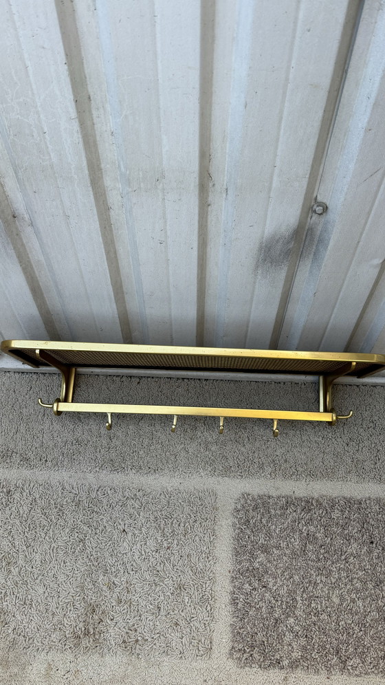Verschönern Sie Ihren Eingangsbereich mit dieser exquisiten Wandgarderobe im Mid-Century-Stil. Ihr elegantes Design und der goldene Farbton verleihen jedem Raum einen Hauch von Eleganz und Raffinesse und vereinen Funktionalität und Stil auf harmonische Weise.