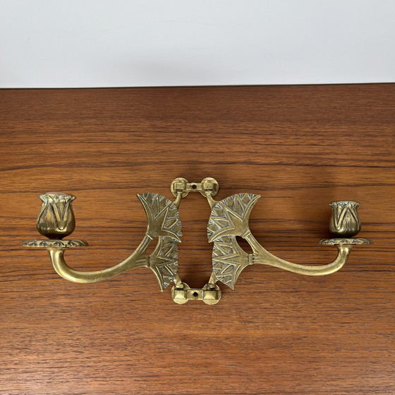 Wandkerzenhalter aus antikem Messing - Art Deco Doppelarm-Wandleuchte