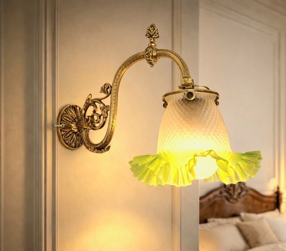 Wandleuchte aus ziseliertem Bronze im Stil Louis XVI. mit grünem Opalglasschirm, um 1900