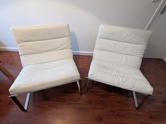 Weiße Cammeo Ledersessel von Natuzzi, entworfen von den Designern Manzoni & Tapinassi. Stahlgestell, Rückenlehne und Bereich unter der Sitzfläche aus hochwertigem Leder. Sehr bequem zu sitzen. Breite in cm: 77, Höhe in cm: 76, Tiefe in cm: 85, Neupreis pro Stück: 2.426 Euro