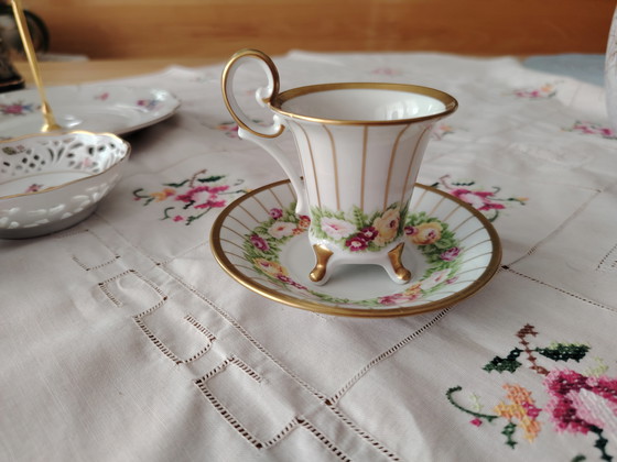 Die Tasse steht auf kleinen Füßen, die ihr eine besondere Eleganz verleihen.