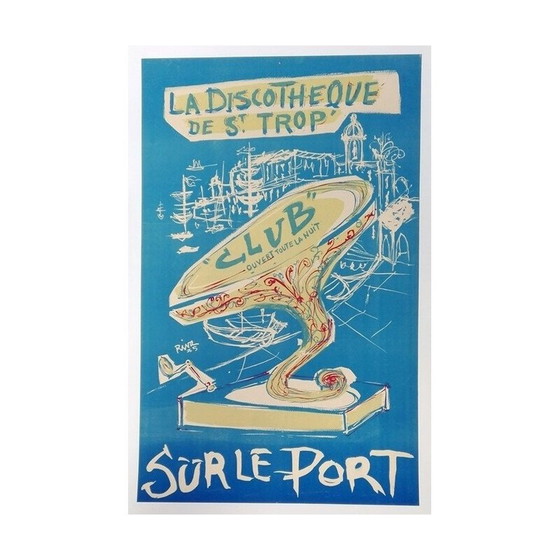 Original Werbeplakat von 1935 für die Diskothek am Hafen von Saint Tropez Größe : 50x80 cm Illustrator : Riva Zustand : sehr gut Typendruck : Lithographie Verpackung : Leinwand