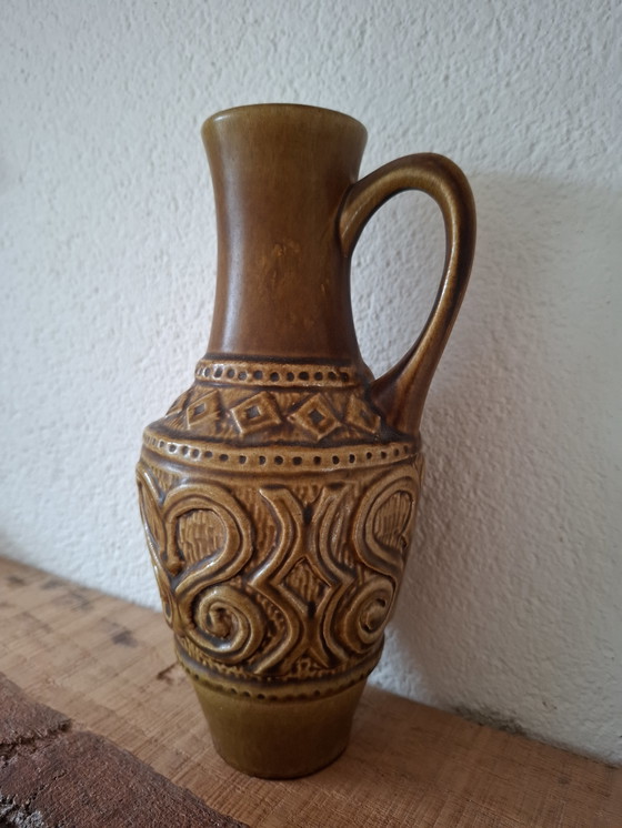 Entdecken Sie den Charme dieser westdeutschen Vase in wunderschönem Moosgrün. Diese Vintage-Keramikvase strahlt zeitlose Eleganz aus und passt perfekt in klassische und moderne Einrichtungen.