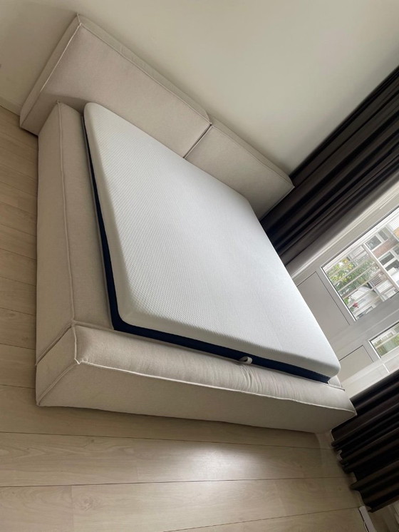 Luxuriöses Westwing-Doppelbett, Modell Lennon, mit Stauraum und leichtgängiger Gasdruckfederöffnung.