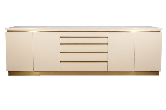 White Lacquer and Brass Sideboard by Jean Claude Mahey, 1980s