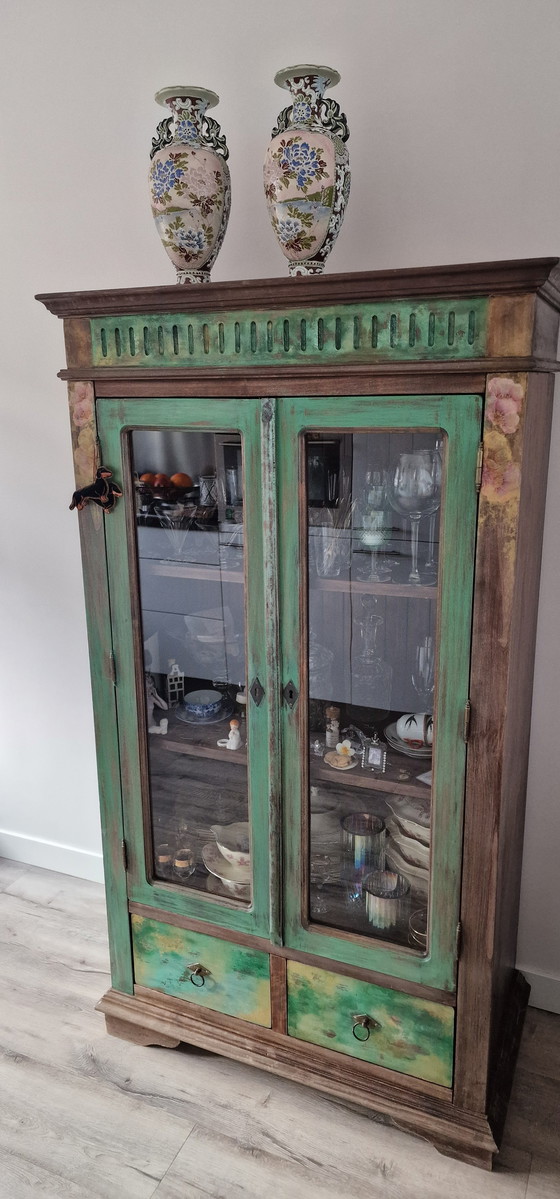 ZustandSehr gutFarbenGrün, Braun, MehrfarbigMaterialHolz, GlasAnzahl der Artikel1Höhe160 cmBreite90 cmTiefe45 cm