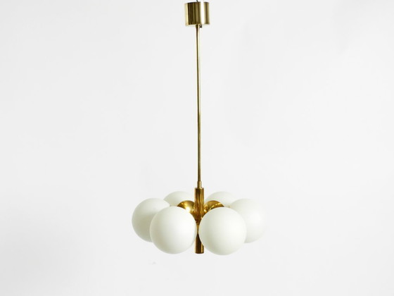 Wunderschöne Messing-Deckenleuchte von Kaiser Leuchten aus den 1960er Jahren mit 6 Opalglasschirmen