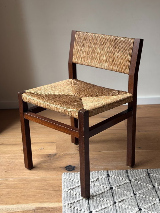 Ein wunderschönes Set aus sechs SE82-Esszimmerstühlen mit Gestellen aus massivem Wengeholz und Sitzflächen und Rückenlehnen aus robustem Flechtwerk. Die warme Holzmaserung, die Blockbeine und das organische Design unterstreichen ihren zeitlosen, minimalistischen Stil - ein echter niederländischer Designklassiker, der ebenso bequem wie schön ist.