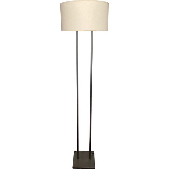 Zeitgenössische Stehlampe aus schwarzem Metall mit weißem Lampenschirm
