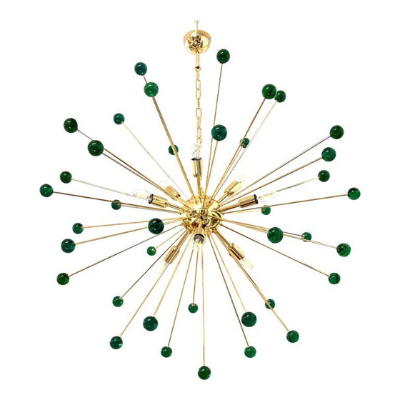 Zeitgenössischer grüner „Stern“-Kronleuchter aus Muranoglas im Sputnik-Stil