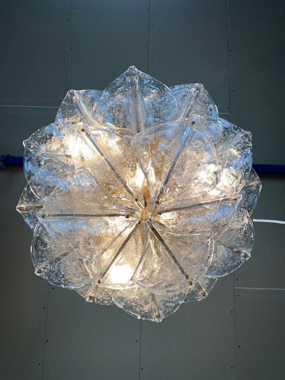 Beleuchten Sie Ihren Raum mit der fesselnden Eleganz dieses Zero Quattro Kronleuchters aus den 1970er Jahren. Dieses atemberaubende Stück verfügt über eine faszinierende Anordnung von strukturierten Glasblättern, von denen jedes einzelne sorgfältig gefertigt wurde, um das Licht einzufangen und zu brechen. Das transparente Glas und der Metallrahmen des Kronleuchters sorgen für einen auffallenden visuellen Effekt, der jedem Raum einen Hauch von Vintage-Glamour verleiht.