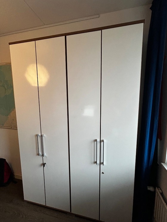 Drei moderne Aufbewahrungsschränke zu verkaufen. Diese Schränke bieten viel Stauraum und fügen sich dank ihrer eleganten weiß-braunen Oberfläche perfekt in jede Einrichtung ein. Ideal zum Organisieren Ihrer Sachen im Wohnzimmer, Schlafzimmer oder Büro. Die Schränke sind in ausgezeichnetem Zustand und sofort einsatzbereit.