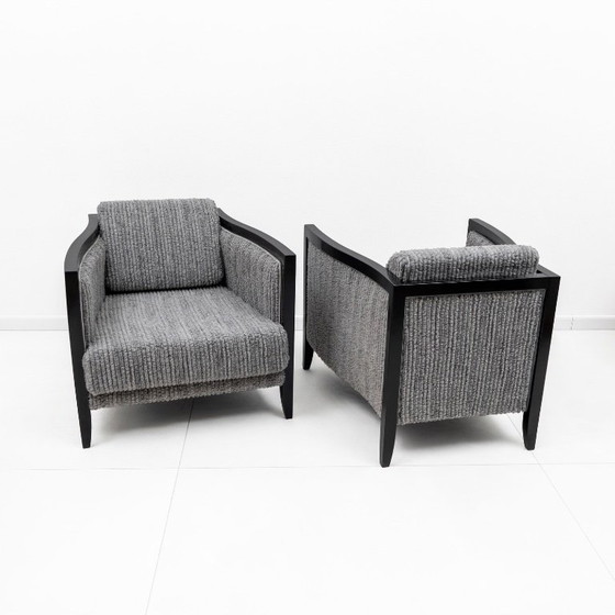 Ein Paar eleganter italienischer Sessel, inspiriert von der Eleganz des Art déco, neu interpretiert mit der warmen, sinnlichen Ästhetik der 1970er-Jahre.