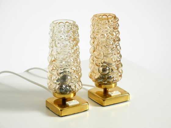 Zwei seltene Nachttischlampen aus Messing aus den 1960er Jahren mit goldfarbenen Blasenglasschirmen