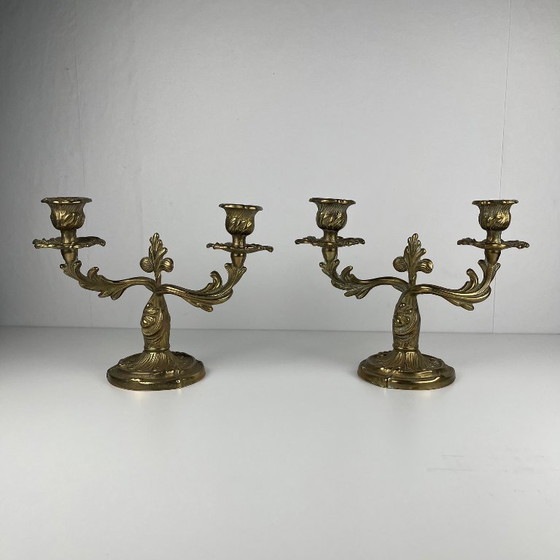 Zwei zweiarmige Leuchter aus vergoldetem Messing im Rokoko-Stil Louis XV, Anfang 20. Jahrhundert.