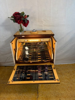 Mid Century Retro Teak & Lamination Cocktail Bar Cabinet (Circa 1950–1960)  A stunning and playful example of mid century designMid Century Retro Teak & Lamination Cocktail Bar Cabinet (Circa 1950–1960)  A stunning and playful example of mid century design