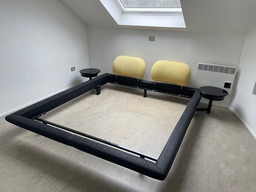 Bettumrandung, Stützkissen und Nachttische mit SchubladenBettumrandung, Stützkissen und Nachttische mit Schubladen