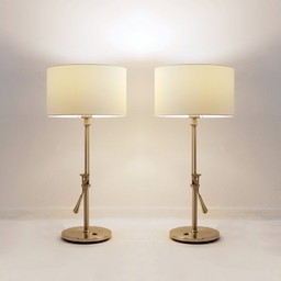 Zwei Tischleuchten aus gebürstetem Stahl mit verstellbarer Neigung – Vereinigtes Königreich