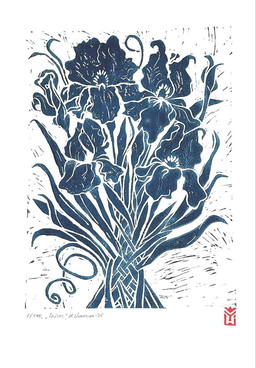 Schwertlilien - A3 Handgefertigter Linolschnitt Druck