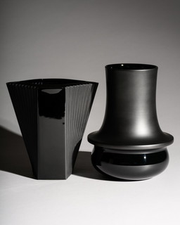 Duo aus schwarzen Porzellanvasen, Jan van der Vaart & Platt & Young für Rosenthal, 1980er Jahre