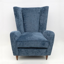 Paolo Buffa Mid-Century Modern Sessel aus italienischem Nussbaumholz und Bouclé-Beschichtung, 1950er Jahre