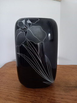 Anisgrüne und schwarze Keramikschale/Mittelstück, Saint-Clément – Modell 8218 – B. Letalle – 1950er Jahre